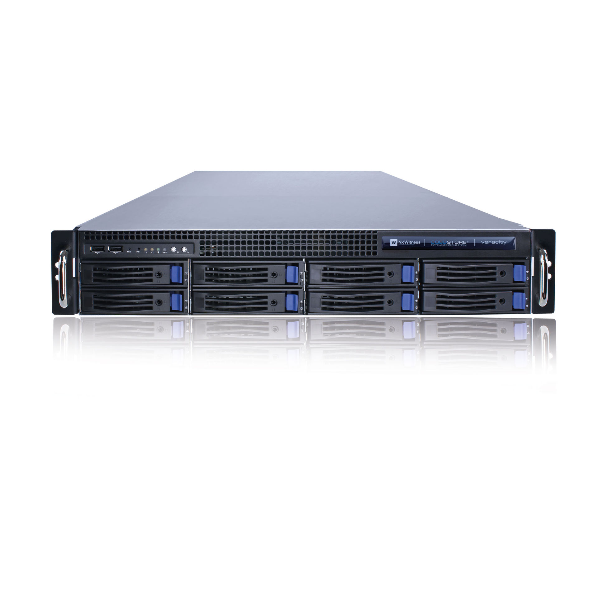 The "NX" versions of COLDSTORE have all the features and benefits of standard COLDSTOREs in addition to the embedded Nx Witness VMS software. The 2UD 8-bay NX model is the same as the 2U NX model but with dual hot-swap power supplies.